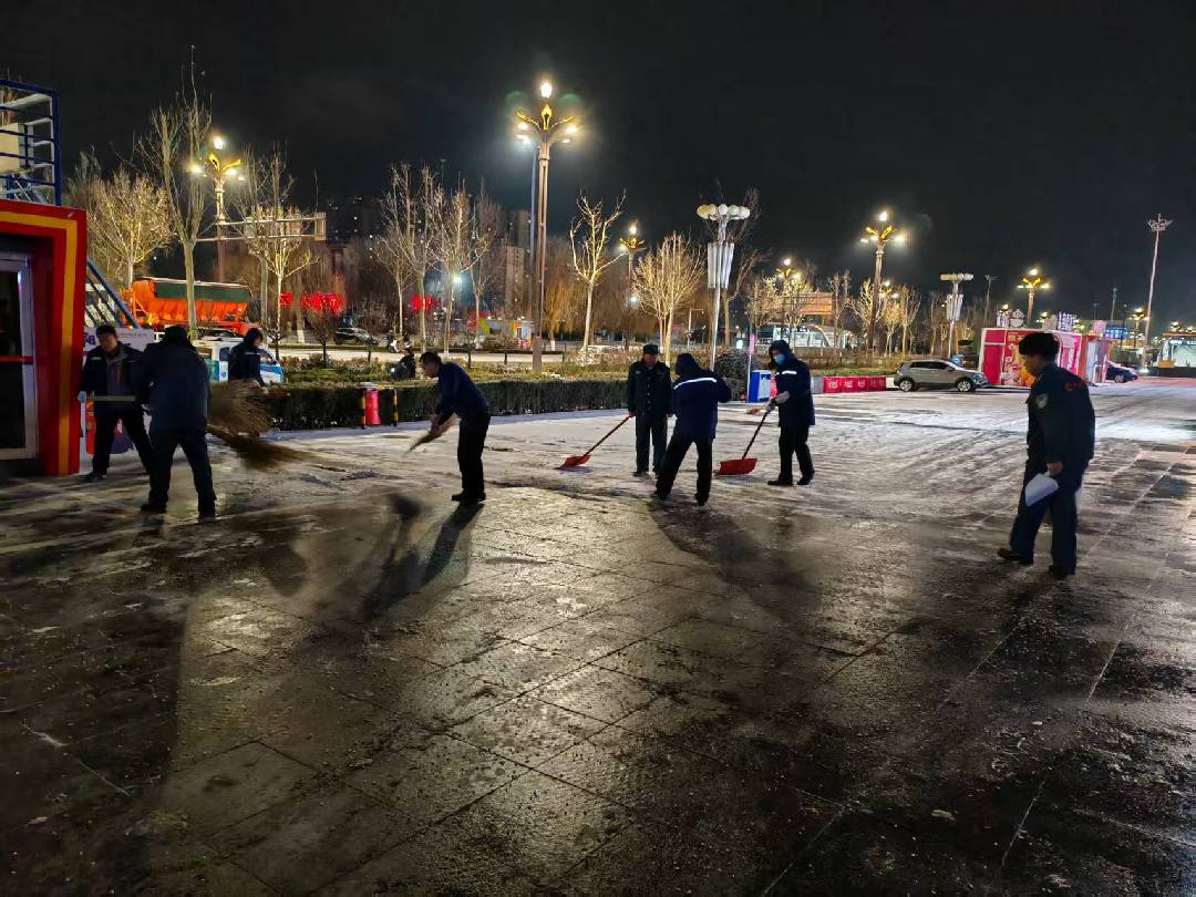長(zhǎng)田物業(yè)華百項(xiàng)目部,趁閉店時(shí)段全力攻堅(jiān)。外圍路面的積雪與薄冰,被一一清掃、鏟除。每一次彎腰,每一下?lián)]鏟,都是為了次日商戶開(kāi)門(mén)迎客、顧客安心通行的穩(wěn)穩(wěn)守護(hù)。
