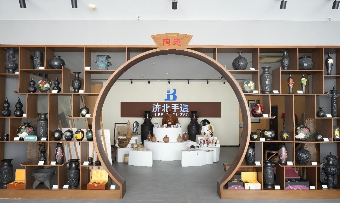 作為濟陽區(qū)非遺文化的重要展示窗口,展廳始終以傳統(tǒng)技藝類產(chǎn)品為核心支柱。升級后,黑陶的古樸厚重、老粗布的經(jīng)緯溫情、木作的匠心巧思、剪紙的靈動鮮活、柳編的自然質(zhì)樸,以及黃河五彩陶、刻瓷、烙畫、彩塑等十余項代表性非遺手造產(chǎn)品依舊悉數(shù)亮相,每一件作品都承載著當?shù)亟橙藬?shù)十年的技藝沉淀,全方位呈現(xiàn)了非遺文化的深厚底蘊與獨特魅力,讓觀眾在參觀中直觀感受傳統(tǒng)手造的文化溫度。
