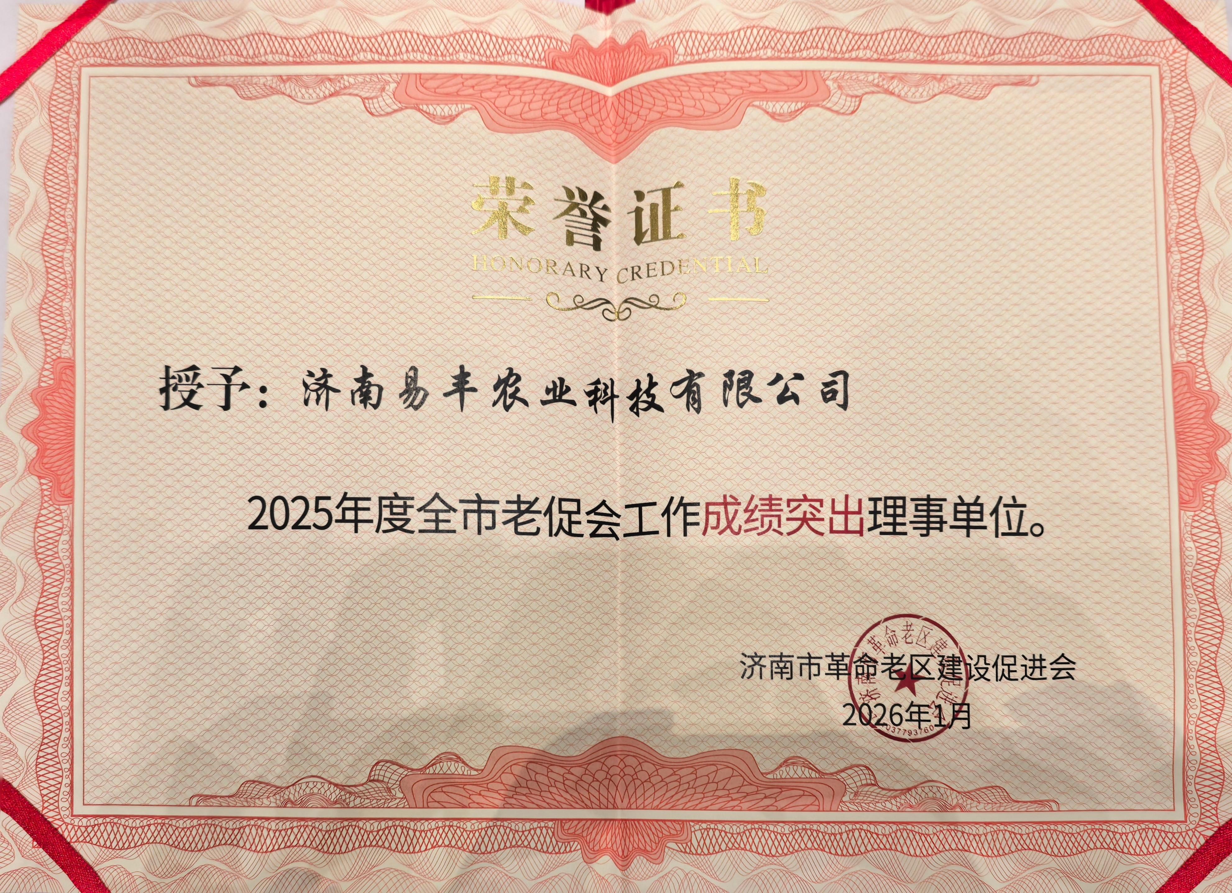 會(huì )議全面總結2025年度全市老區建設工作成效,部署2026年重點(diǎn)任務(wù),并對實(shí)績(jì)突出的先進(jìn)單位和個(gè)人進(jìn)行了表彰。易豐農業(yè)憑借在革命老區公益幫扶與社會(huì )責任實(shí)踐中的優(yōu)異表現,榮獲“2025年度全市老促會(huì )工作成績(jì)突出理事單位”稱(chēng)號。