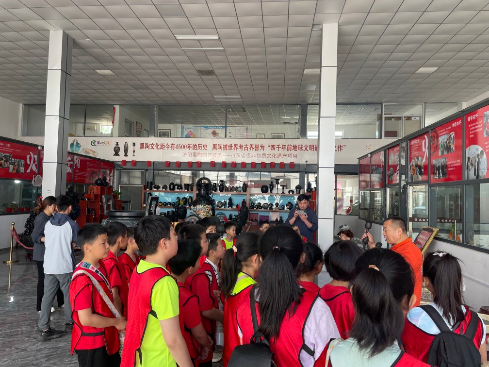 龍格黑陶藝術(shù)研究院內(nèi),孩子們的目光被古樸的黑陶器物深深吸引。省級(jí)非物質(zhì)文化遺產(chǎn)項(xiàng)目代表性傳承人徐慶增老師現(xiàn)場(chǎng)演示拉坯、雕刻技藝,手中的陶土仿佛被賦予了生命,在指尖的舞動(dòng)下逐漸成型。